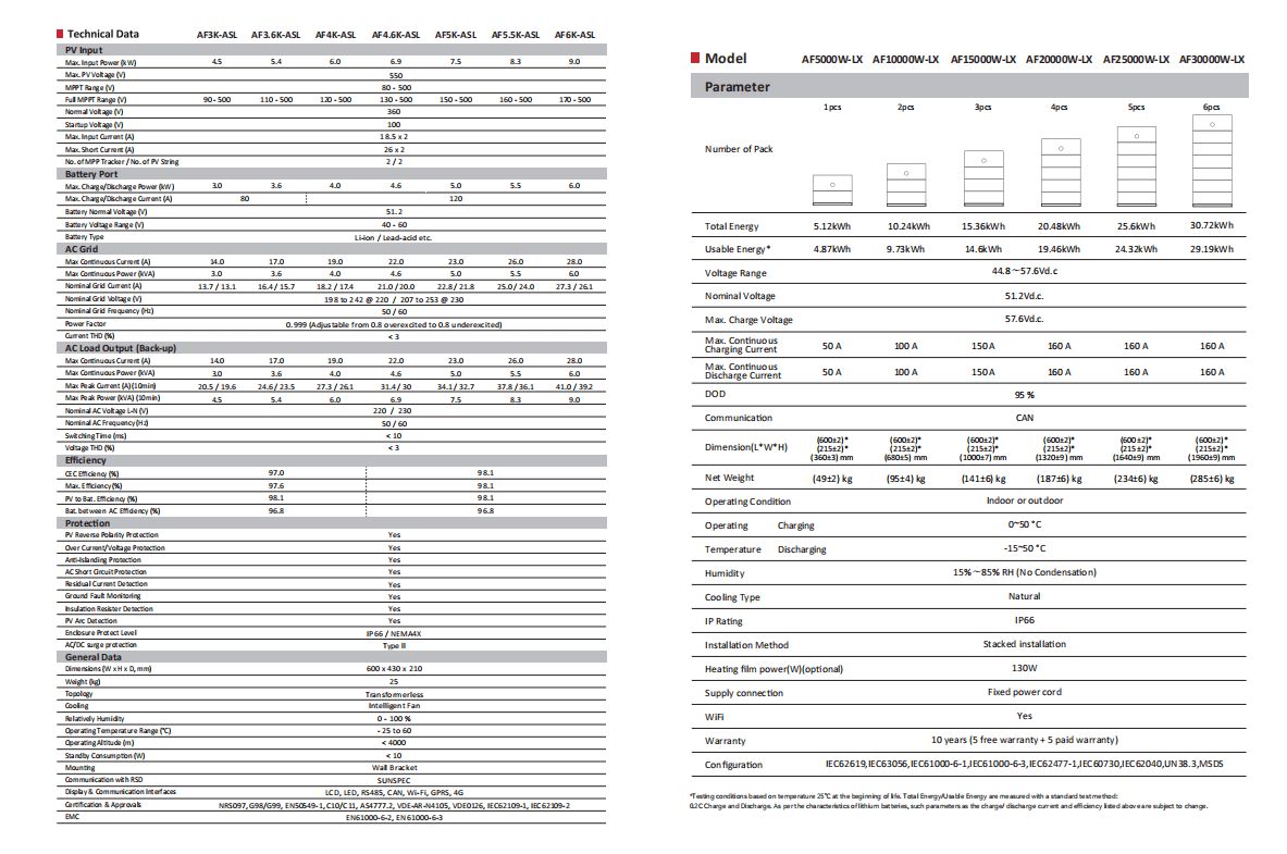Afore ASL Series is an all-in-one solar and storage solution that integrates the inverter, battery charger, UPS-level switching, and battery enclosure into a pre- wired modular system for easier and faster installation. The compact, elegantly designed, and robust unit is IP66 rated, so it can be mounted either inside or outside withstanding all weather conditions and brings a reduction of installation time of up to 50%.